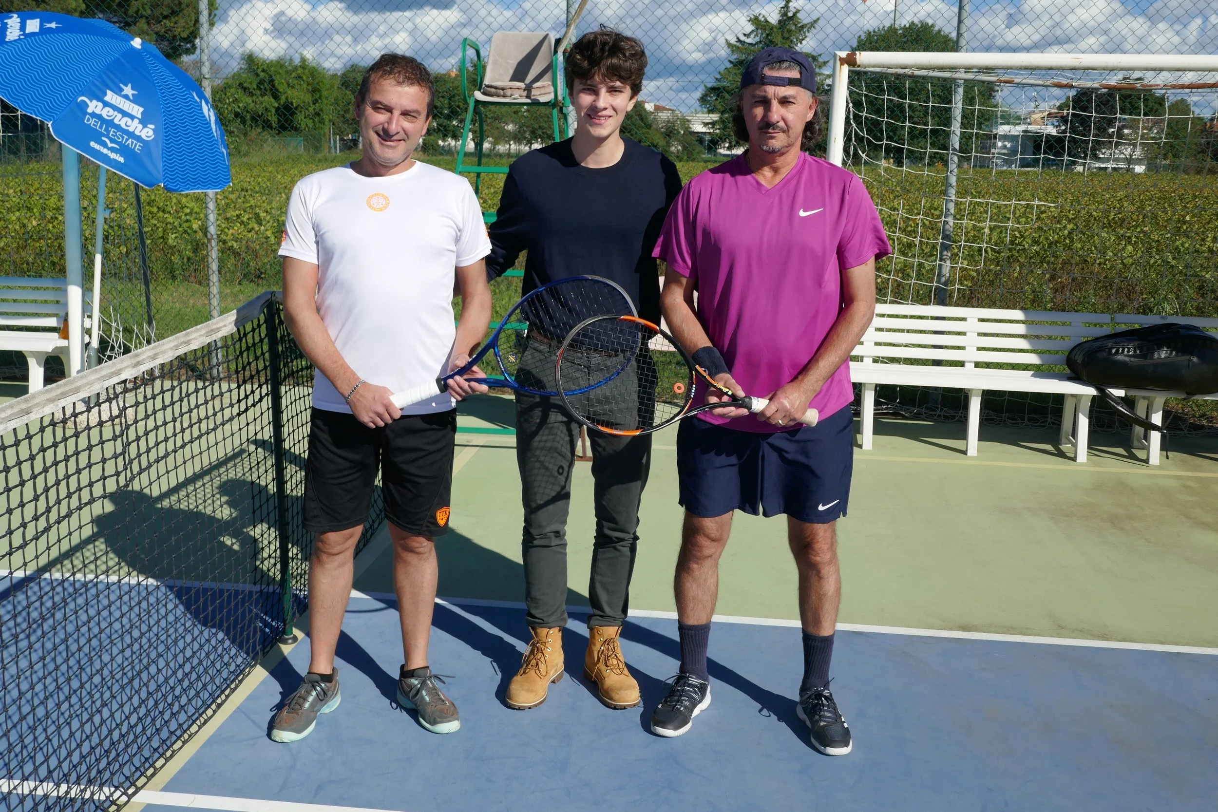 I finalisti Open Gabriel Hidalgo e Lorenzo Favero con il giudice di sedia Leonardo Sabot
